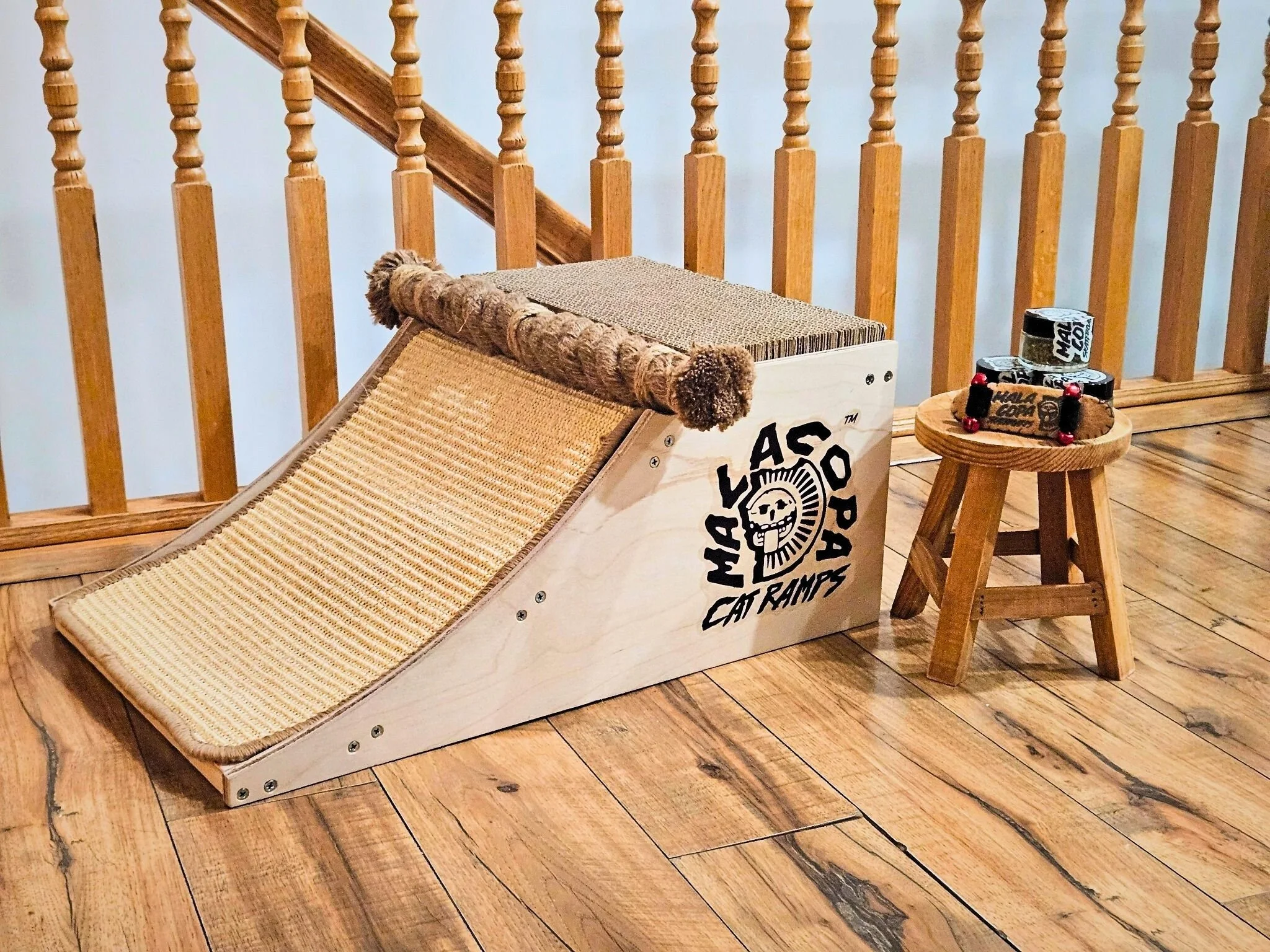 This pre-order sale is our first step in showing what we’re capable of — born from the love of skateboarding and cats alike. The Original and Only (SKATE) CAT RAMP - crafted by Mala Copa Skateboards LLC